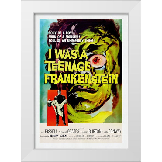 I Was A Teenage Frankenstein White Modern Wood Framed Art Print by Screendoor