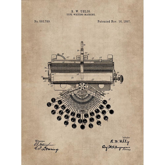 Patent Document of a Type Writing Machine White Modern Wood Framed Art Print by CAG