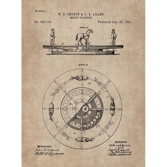 Patent Document of a Merry-Go-Round White Modern Wood Framed Art Print by CAG