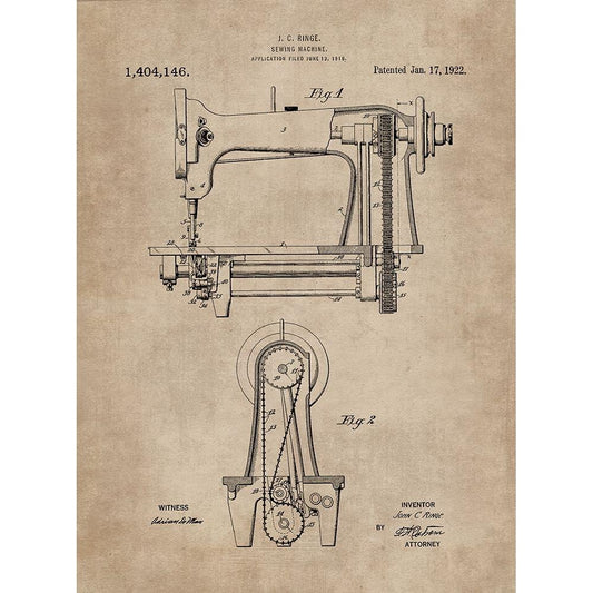 Patent Document of a Sewing Machine White Modern Wood Framed Art Print by CAG