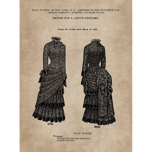 Patent Document of a Ladys Costume White Modern Wood Framed Art Print by CAG