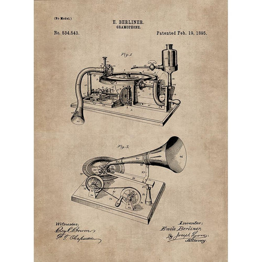 Patent Document of a Gramophone White Modern Wood Framed Art Print by CAG