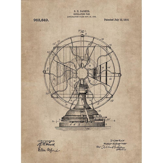 Patent Document of an Oscillating Fan White Modern Wood Framed Art Print by CAG