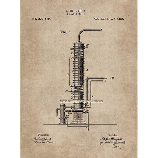 Patent Document of an Alcohol Still White Modern Wood Framed Art Print by CAG