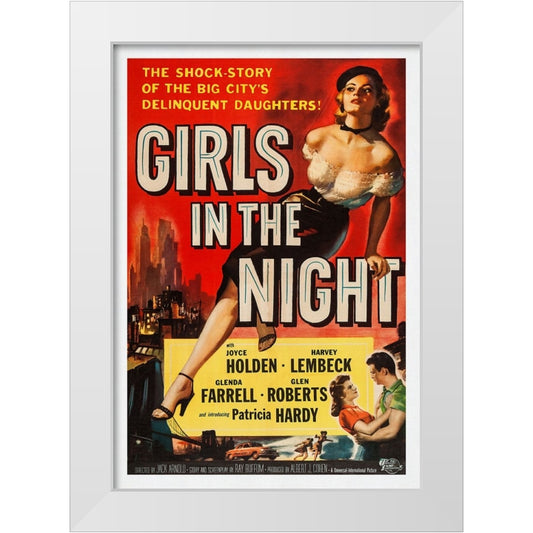 Girls In The Night White Modern Wood Framed Art Print by Screendoor