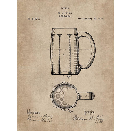 Patent Document of a Beer Mug White Modern Wood Framed Art Print by CAG