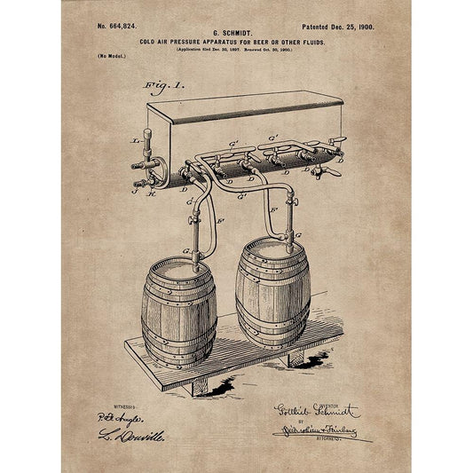 Patent Document of a Cold Air Pressure Apparatus for Beer White Modern Wood Framed Art Print by CAG