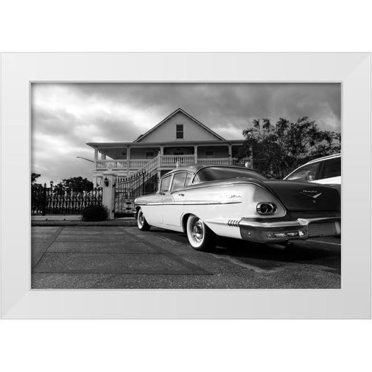 The Red Car White Modern Wood Framed Art Print by Malone, Will