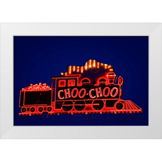 Choo Choo Sign White Modern Wood Framed Art Print by Lee, Rachel