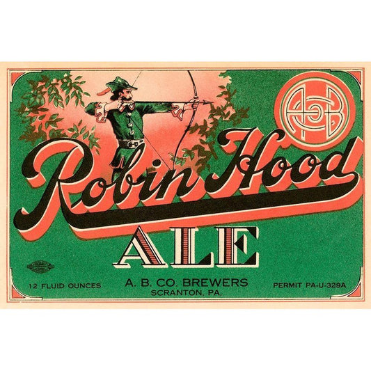 Robin Hood Ale Gold Ornate Wood Framed Art Print with Double Matting by Vintage Booze Labels