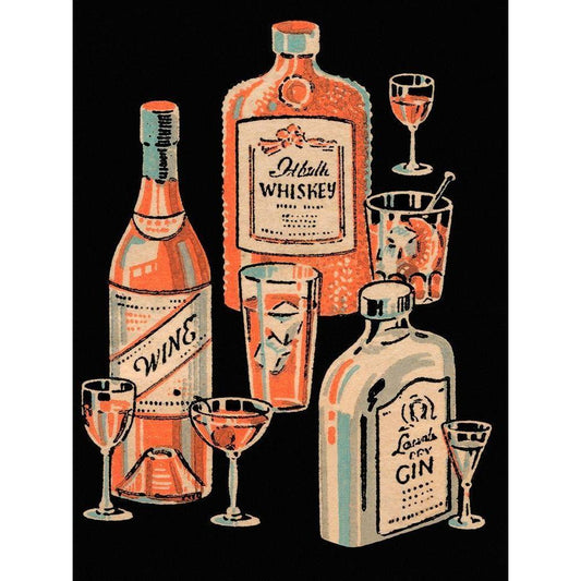 Whiskey, Wine and Gin Gold Ornate Wood Framed Art Print with Double Matting by Vintage Booze Labels