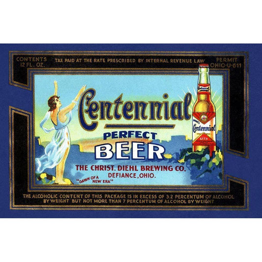 Centennial Perfect Beer Label Gold Ornate Wood Framed Art Print with Double Matting by Vintage Booze Labels