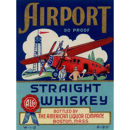 Airport Straight Whiskey Gold Ornate Wood Framed Art Print with Double Matting by Vintage Booze Labels