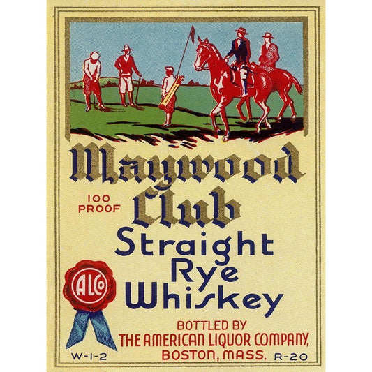 Maywood Club Straight Rye Whiskey Gold Ornate Wood Framed Art Print with Double Matting by Vintage Booze Labels