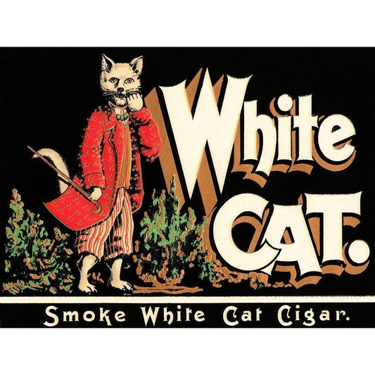 White Cat Brand Cigars Gold Ornate Wood Framed Art Print with Double Matting by Vintage Booze Labels