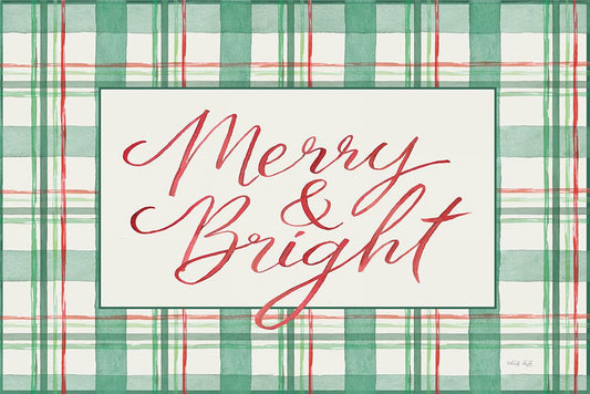 Merry And Bright Sign Black Ornate Wood Framed Art Print with Double Matting by Jacobs, Cindy