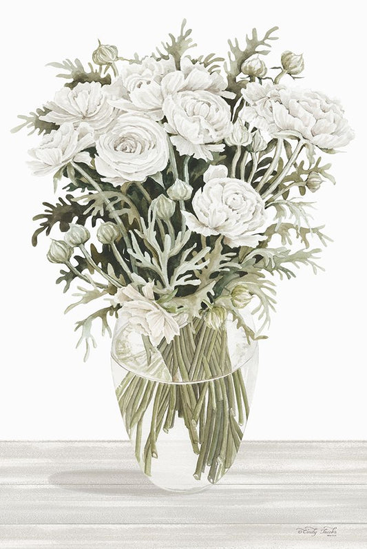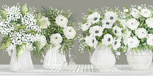 White Blooms in a Row Black Ornate Wood Framed Art Print with Double Matting by Jacobs, Cindy