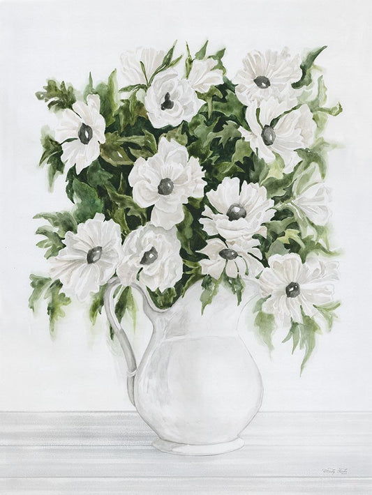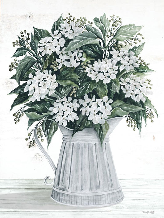 Hydrangea Pitcher Black Ornate Wood Framed Art Print with Double Matting by Jacobs, Cindy