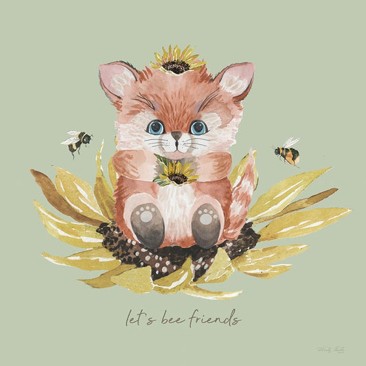 Baby Fox - Lets Bee Friends Black Ornate Wood Framed Art Print with Double Matting by Jacobs, Cindy