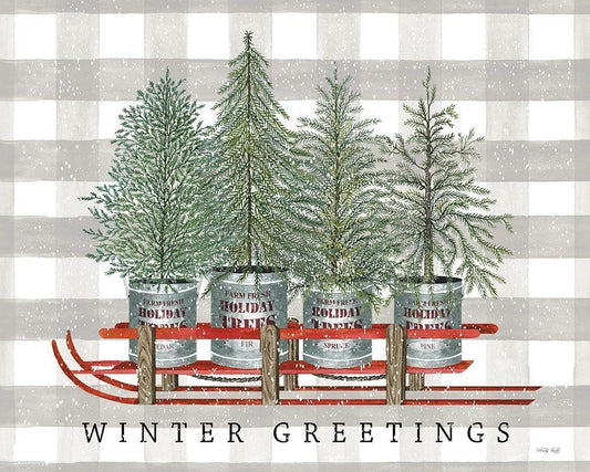Winter Greetings Black Ornate Wood Framed Art Print with Double Matting by Jacobs, Cindy