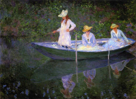 Barque A Giverny Black Ornate Wood Framed Art Print with Double Matting by Monet, Claude