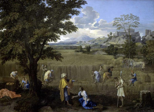 Summer, or Ruth and Boaz Black Ornate Wood Framed Art Print with Double Matting by Poussin, Nicolas