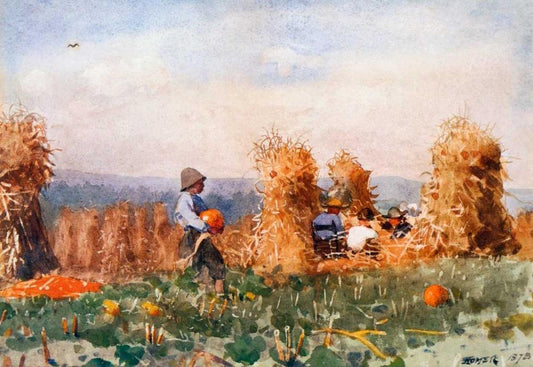Pumpkin Patch Black Ornate Wood Framed Art Print with Double Matting by Homer, Winslow