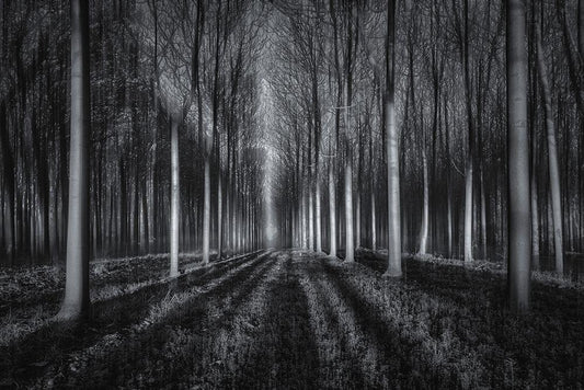 Into The Forest White Modern Wood Framed Art Print with Double Matting by Zhu, Jingshu
