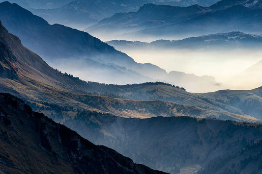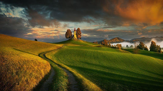 Autumnal Misty Dawn White Modern Wood Framed Art Print with Double Matting by Carozzi, Fiorenzo