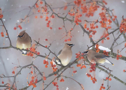 Snow-Bird And Tree White Modern Wood Framed Art Print with Double Matting by Li, Ben