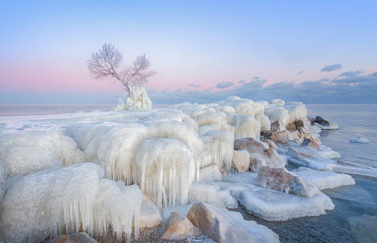 Ice Wonderland White Modern Wood Framed Art Print with Double Matting by Deng, Larry