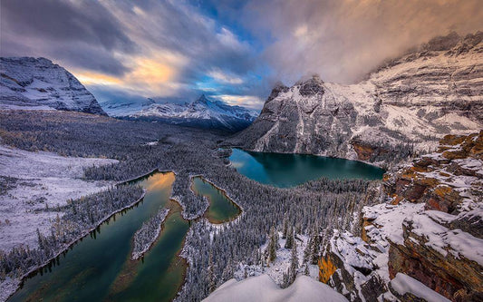 Lake Ohara White Modern Wood Framed Art Print with Double Matting by Zheng, Michael