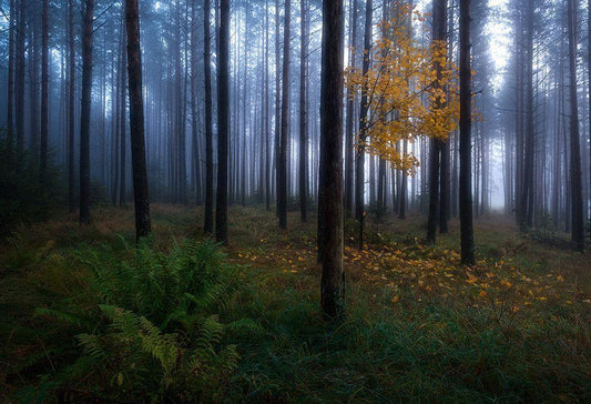 The Lights Of The Forest White Modern Wood Framed Art Print with Double Matting by Osuna, Fran