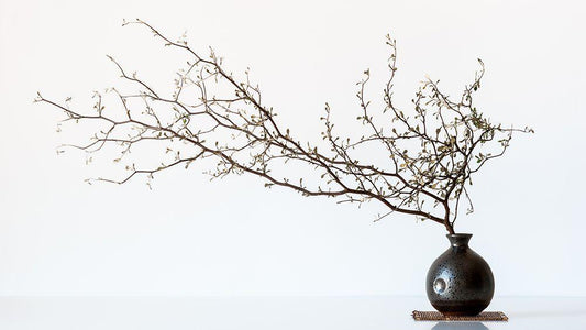 Vase And Branch White Modern Wood Framed Art Print with Double Matting by Prbimages