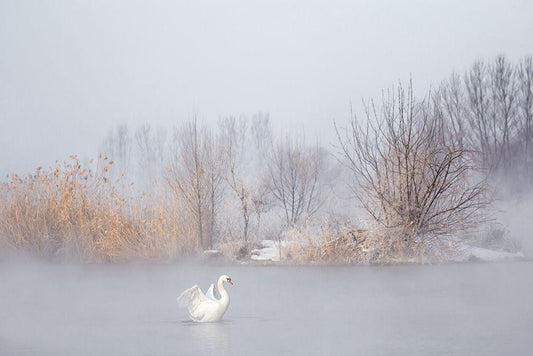 Ice Lake White Modern Wood Framed Art Print with Double Matting by Zhu, Hua