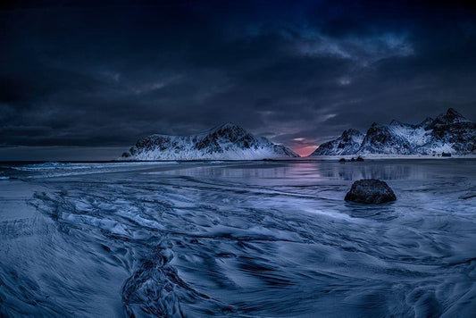 Skagsanden Beach Lofoten White Modern Wood Framed Art Print with Double Matting by Olsson, Ronny