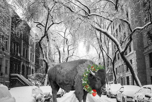 Buffalo Christmas White Modern Wood Framed Art Print with Double Matting by Phillip, Jamie
