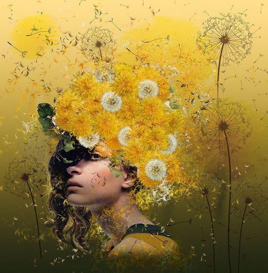Dandelions White Modern Wood Framed Art Print with Double Matting by Simongulashvili, Natalia