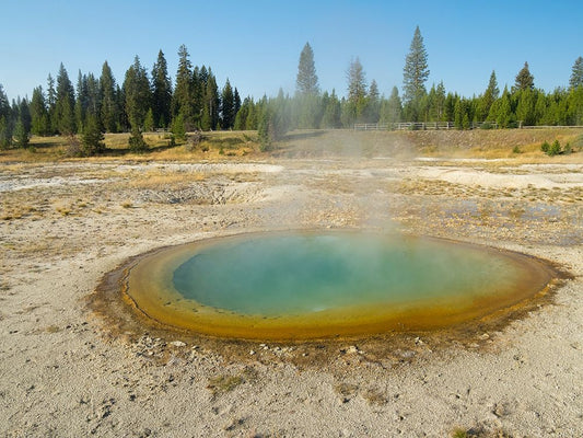 Wyoming- Yellowstone National Park. West Thumb Geyser Basin- Abyss Pool White Modern Wood Framed Art Print with Double Matting by Wild, Jamie and Judy