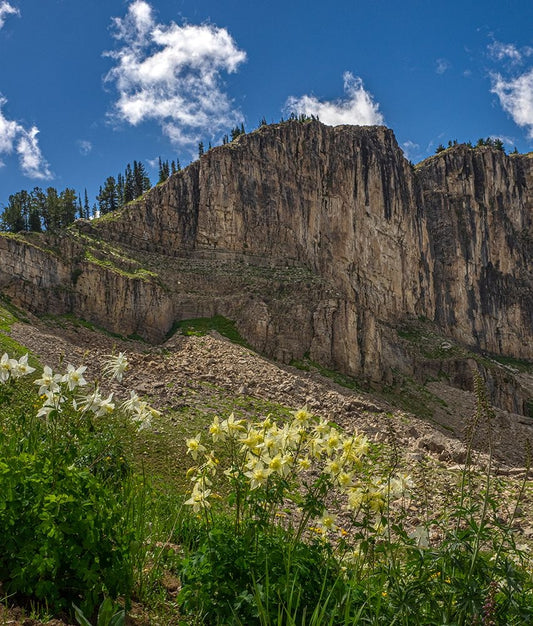 USA-Wyoming-Field of Columbine wildflowers-and mountain-Jedediah Smith Wilderness White Modern Wood Framed Art Print with Double Matting by Garber, Howie