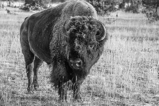 USA-Wyoming-Yellowstone National Park-Upper Geyser Basin-Lone male American bison-aka buffalo with White Modern Wood Framed Art Print with Double Matting by Hopkins, Cindy Miller