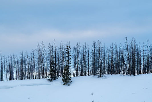 USA-Wyoming-Yellowstone National Park Winter line of trees White Modern Wood Framed Art Print with Double Matting by Hopkins, Cindy Miller