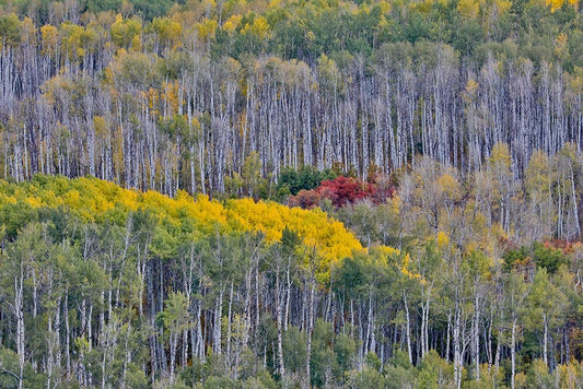 USA- Wyoming. Kebler Pass with Aspen grove in fall color White Modern Wood Framed Art Print with Double Matting by Gulin, Darrell
