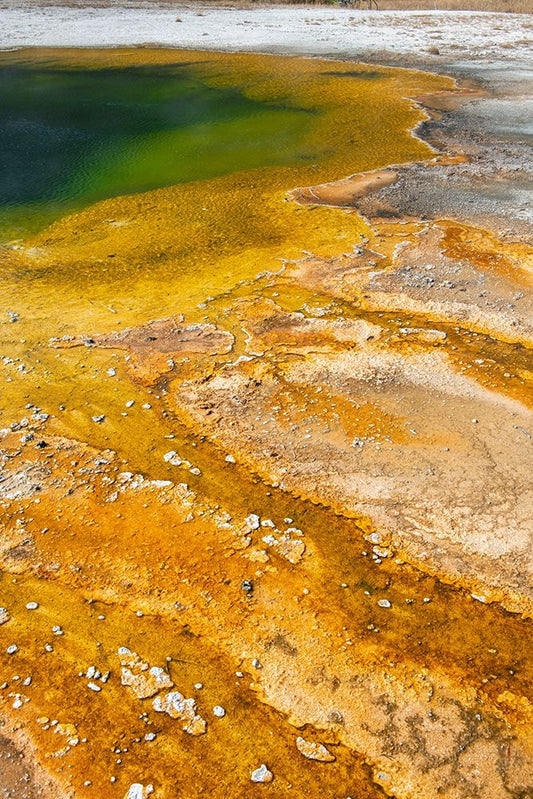 USA-Wyoming-Yellowstone National Park-Black Sand Basin-Emerald Pool-Green pool with yellow thermopi White Modern Wood Framed Art Print with Double Matting by Hopkins, Cindy Miller