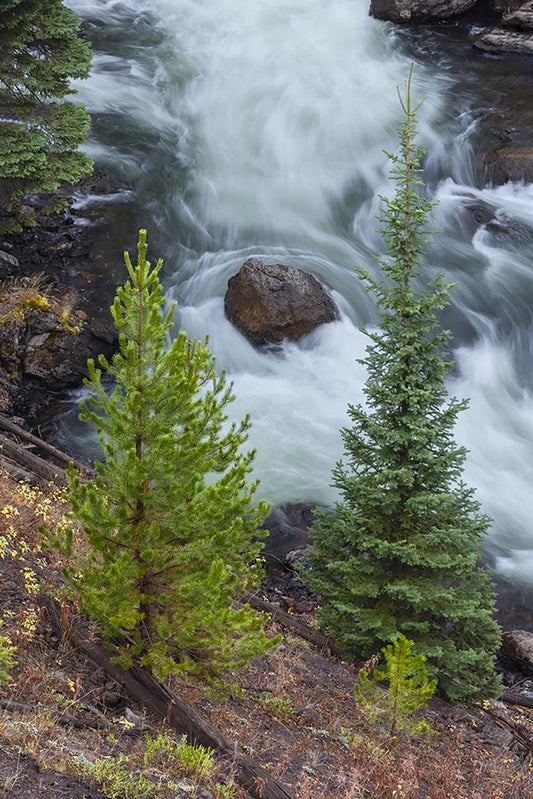 Flowing water in Firehole River-Yellowstone National Park-Wyoming White Modern Wood Framed Art Print with Double Matting by Jones, Adam