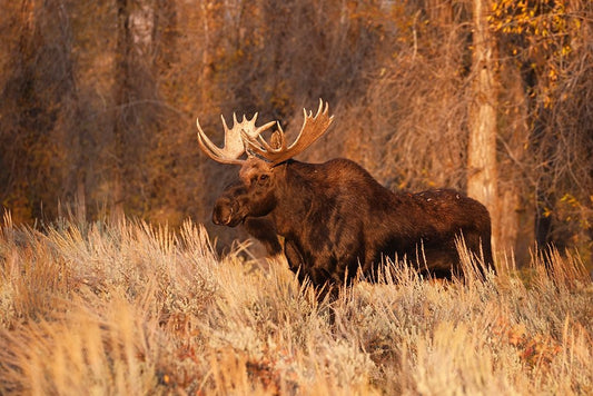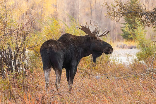 Bull moose in autumn-Grand Teton National Park-Wyoming White Modern Wood Framed Art Print with Double Matting by Jones, Adam