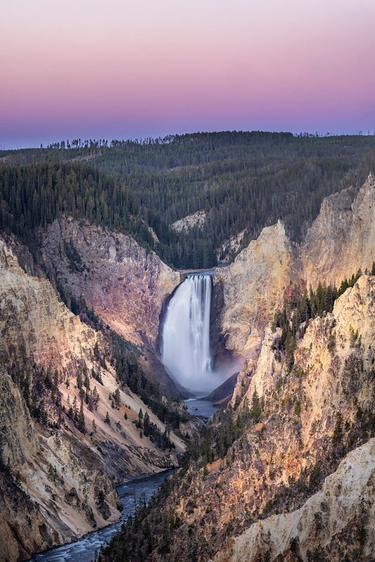 Lower Falls and colorful canyon walls of hydrothermally altered rhyolite White Modern Wood Framed Art Print with Double Matting by Jones, Adam