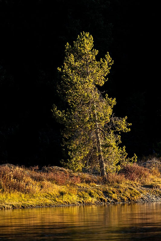 Tree on shoreline of Snake River at sunset-Grand Teton National Park-Wyoming White Modern Wood Framed Art Print with Double Matting by Jones, Adam