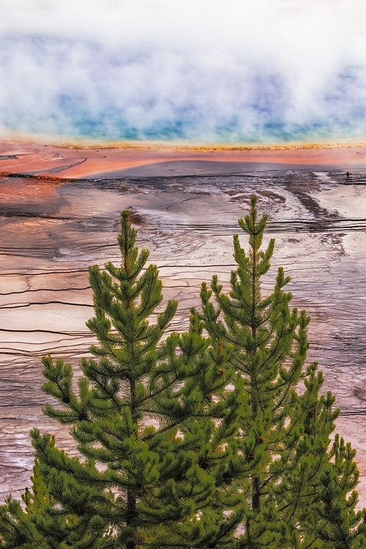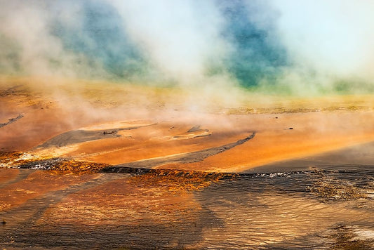 Elevated view of Grand Prismatic spring and colorful bacterial mat-Yellowstone National Park White Modern Wood Framed Art Print with Double Matting by Jones, Adam