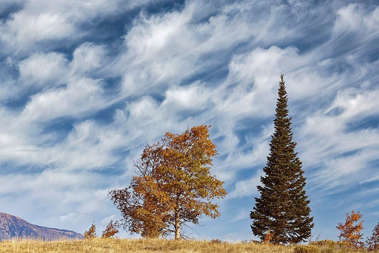 Two trees on ridge and cloud formation-Grand Teton National Park-Wyoming White Modern Wood Framed Art Print with Double Matting by Jones, Adam